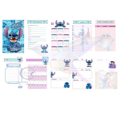 Agenda tamaño 14 x 21.5 cms. Incluye: Datos personales, calendario 2026, apartado para cumpleaños mensuales, propósitos anuales, plan de ahorro, apartado para anotar los libros para leer, las películas para ver, contactos, notas importantes, plan mensual y agenda semanal.