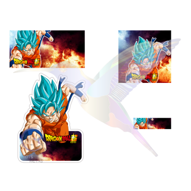 Kit Básico - Archivo en PowerPoint con las imágenes para imprimir etiquetas de cuadernos, libros y lápices de Dragon Ball. Las etiquetas que vienen son una rectangular de 10x5 cms; una cuadrada de 7x7 cms, una rectangular de 6x1.5; y una etiqueta silueta grande para los libros. Archivo descargable al concretar la compra.